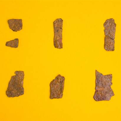 古墳時代中期の遺跡です。一般集落ではほとんど見られない鉄器の素材となる鉄挺(てってい)や韓式系土器が多数出土していることから、朝鮮半島との深い関わりを感じさせます。倭の五王の時代に半島との行き来を担った海人(あま)の航海術が想像できる遺跡と遺物です。