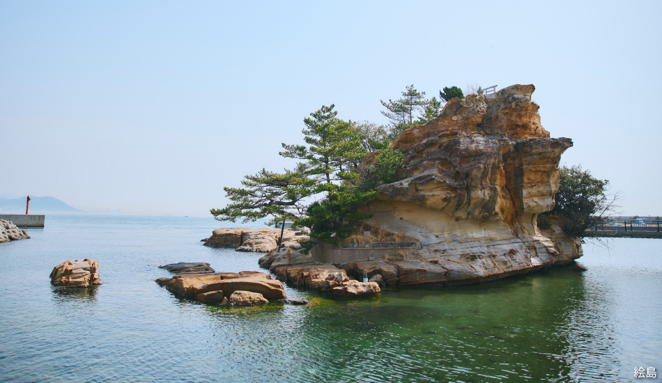 淡路島の北端に浮かぶ絵島は、自然が作り出す美しい姿の島で、国生み神話に登場する「おのころ島」伝承地の一つとされています。