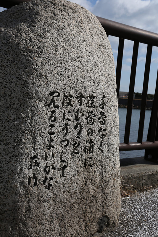 また、平安時代末期から鎌倉時代に活躍した歌人・西行法師は「千鳥なく 絵島の浦に住む月を 浪にうつしてみる今宵かな」と詠んでおり、その歌が絵島へ渡る橋の入口に建てられた歌碑に刻まれています。