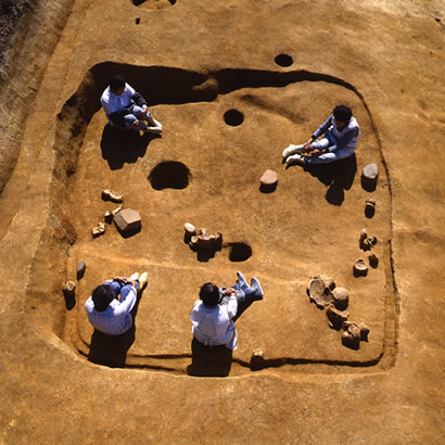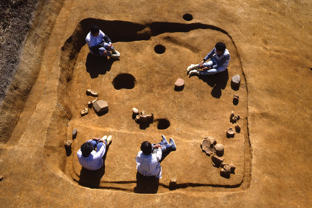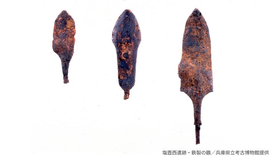 弥生時代後期に明石海峡を見下ろす山上に営まれた集落跡です。弥生時代のものとしては全国最大級の鉄製の鏃(やじり)や、狼煙(のろし)を上げた跡などが発見されました。瀬戸内海から畿内に向かう海上航路の要衝である明石海峡を見張った場所ではないかと考えられています。