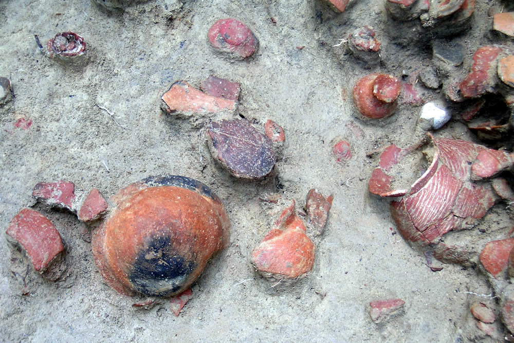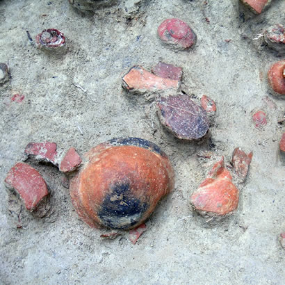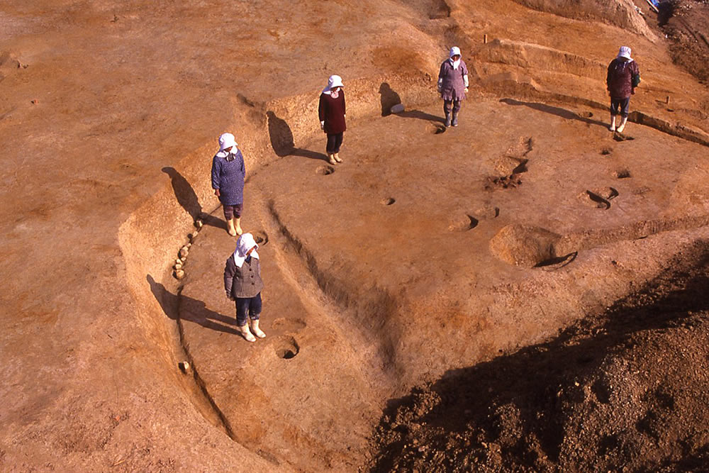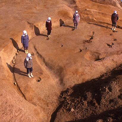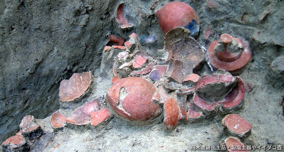 畿内に先駆けて鉄器文化を取り入れた弥生時代山間地集落の一つ。40haに及ぶ広大な面積や中国鏡片等の発見から、丘陵上の遺跡群の中心的役割を担っていたと考えられます。製塩土器やイイダコ壷なども出土しており、山間地集落と海の民の関係を知ることができます。