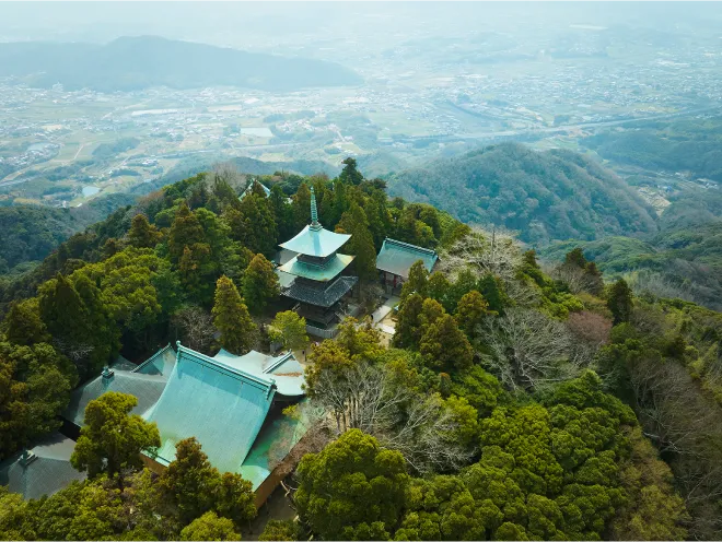 イザナギ・イザナミの二柱の神が国生みの際に一番始めに創った山ということから「先山」と名付けられたと伝えられています。先山の頂上につくられ、淡路四国八十八ヶ所第一番の札所になっている千光寺や天の岩戸に姿を隠した天照大神を祀る岩戸神社などがある「国生み神話」ゆかりの地です。