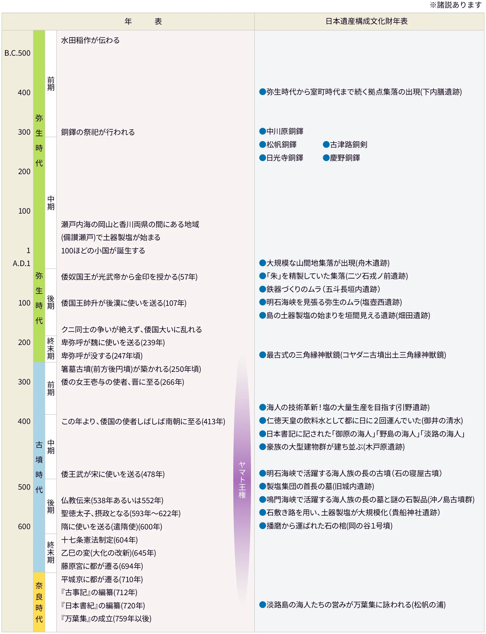 大陸や朝鮮半島と畿内を結ぶ瀬戸内の海の東端に位置する淡路島。畿内の前面に横たわる瀬戸内最大の島には今なお、古代国家形成期に重要な役割を果たした海の民の足跡が残ります。その始まりは紀元前の弥生時代。稲作の本格化とともに古代国家成立に向けて社会が大きく変化した頃で、淡路島ではこの時代の遺跡が多数発見されています。
