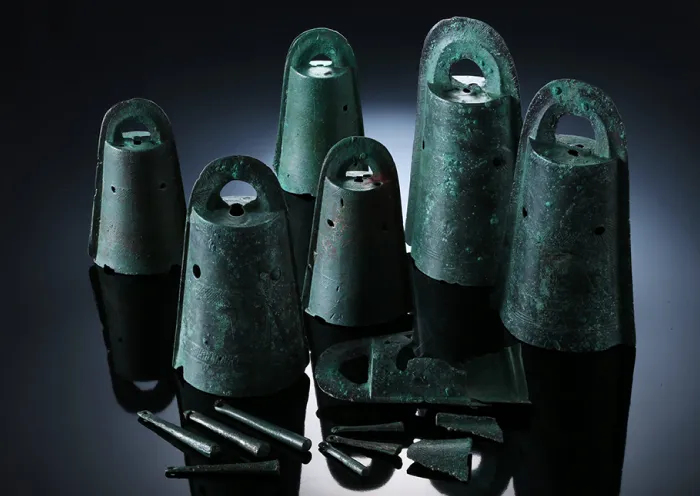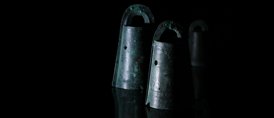 古式の青銅器である21個の銅鐸と14本の銅剣はその代表格。発見された7個すべてに舌を伴う松帆銅鐸、14本がまとまって出土した古津路銅剣、同じ慶野村で見つかった日光寺銅鐸と慶野銅鐸など、その多くが海岸部で発見されました。